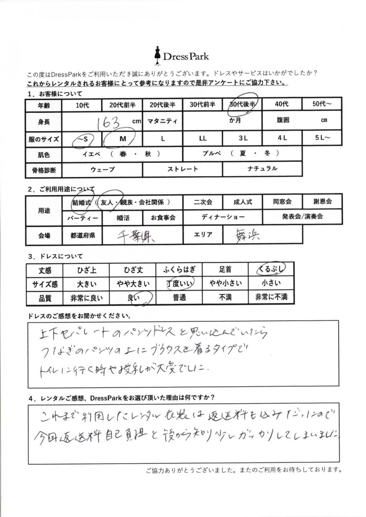 千葉県 T.K様163㎝ ~Sサイズ舞浜・浦安・幕張