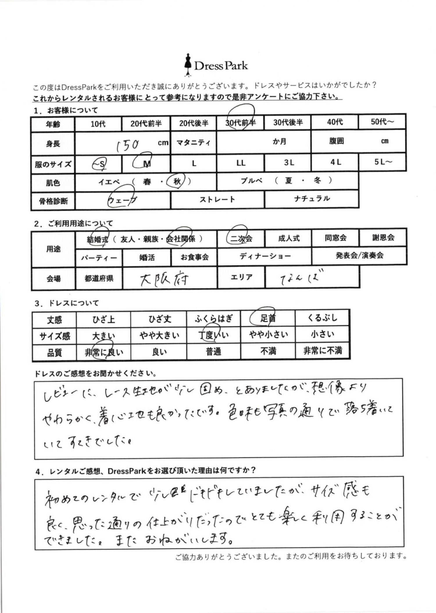 大阪府 M.Y様150㎝ ~Sサイズ