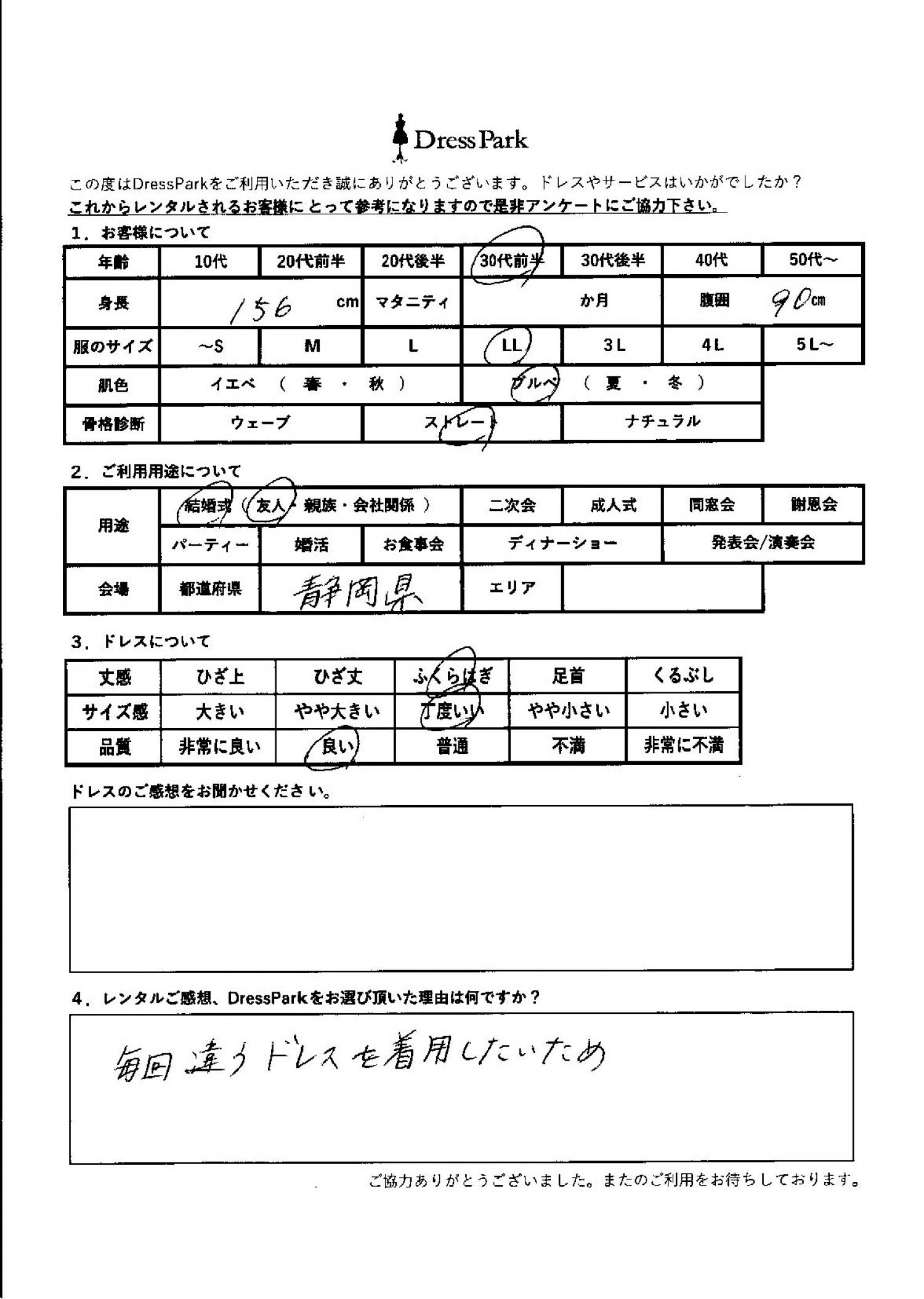 静岡県 M.S様156㎝ LLサイズ #30代#大きいサイズLL~#155~159㎝#結婚式(友人)#静岡県 ◆レンタルしたドレスはこちら ◆レンタルしたサイズは:LL ◆レンタルした日付:2026/04/19 ドレスの着用感 ◆点数: (4点) ◆丈感:ふくらはぎ ◆サイズ感:丁度いい ◆品質:良い ◆肌色:ブルべ ◆骨格診断:ストレート レンタルのご感想、DressParkをお選び頂いた理由 毎回違うドレスを着用したいため。 CUSTOMER REVIEWS お客様の声 気になるカテゴリー別にご利用の感想をチェック! ◆AGE 年代で見る 10代 20代 30代 40代 50代~ ◆SIZE サイズで見る SS/S M/L 大きいサイズLL~ ◆HIGHT 身長で見る 140~149㎝ 150~154㎝ 155~159㎝ 160~164㎝ 165~169㎝ 170㎝以上 ◆マタニティ ~3か月 4~6か月 7~8か月 9~10か月 ◆肌色 イエベ ブルべ ◆骨格診断 ウェーブ ストレート ナチュラル ◆利用シーン 結婚式(友人) 結婚式(親族) 結婚式(会社関係) 二次会 成人式/同窓会 謝恩会 パーティー その他 CUSTOMER REVIEWS都道府県別お客様の声 都道府県別にのお客様の声をチェック! 北海道 青森県 岩手県 宮城県 秋田県 山形県 福島県 茨城県 栃木県 群馬県 埼玉県 千葉県 東京都 神奈川県 新潟県 富山県 石川県 福井県 山梨県 長野県 岐阜県 静岡県 愛知県 三重県 滋賀県 京都府 大阪府 兵庫県 奈良県 和歌山県 鳥取県 島根県 岡山県 広島県 山口県 徳島県 香川県 愛媛県 高知県 福岡県 佐賀県 長崎県 熊本県 大分県 宮崎県 鹿児島県 沖縄県 CUSTOMER REVIEWSエリア別お客様の声 都道府県別にのお客様の声をチェック! 札幌 仙台 名古屋 軽井沢 金沢 神戸・芦屋 博多 那覇 梅田・新大阪 難波・心斎橋 鎌倉・湘南 横浜・みなとみらい 舞浜・浦安・幕張 大宮・浦和 青山・表参道 六本木・麻布 渋谷・恵比寿 新宿 池袋 銀座・丸の内 お台場・汐留 鹿児島市 郡山市 福島市 東予 甲府・石和 LINEでお問い合わせ このサイトではJavaScriptを使用しています