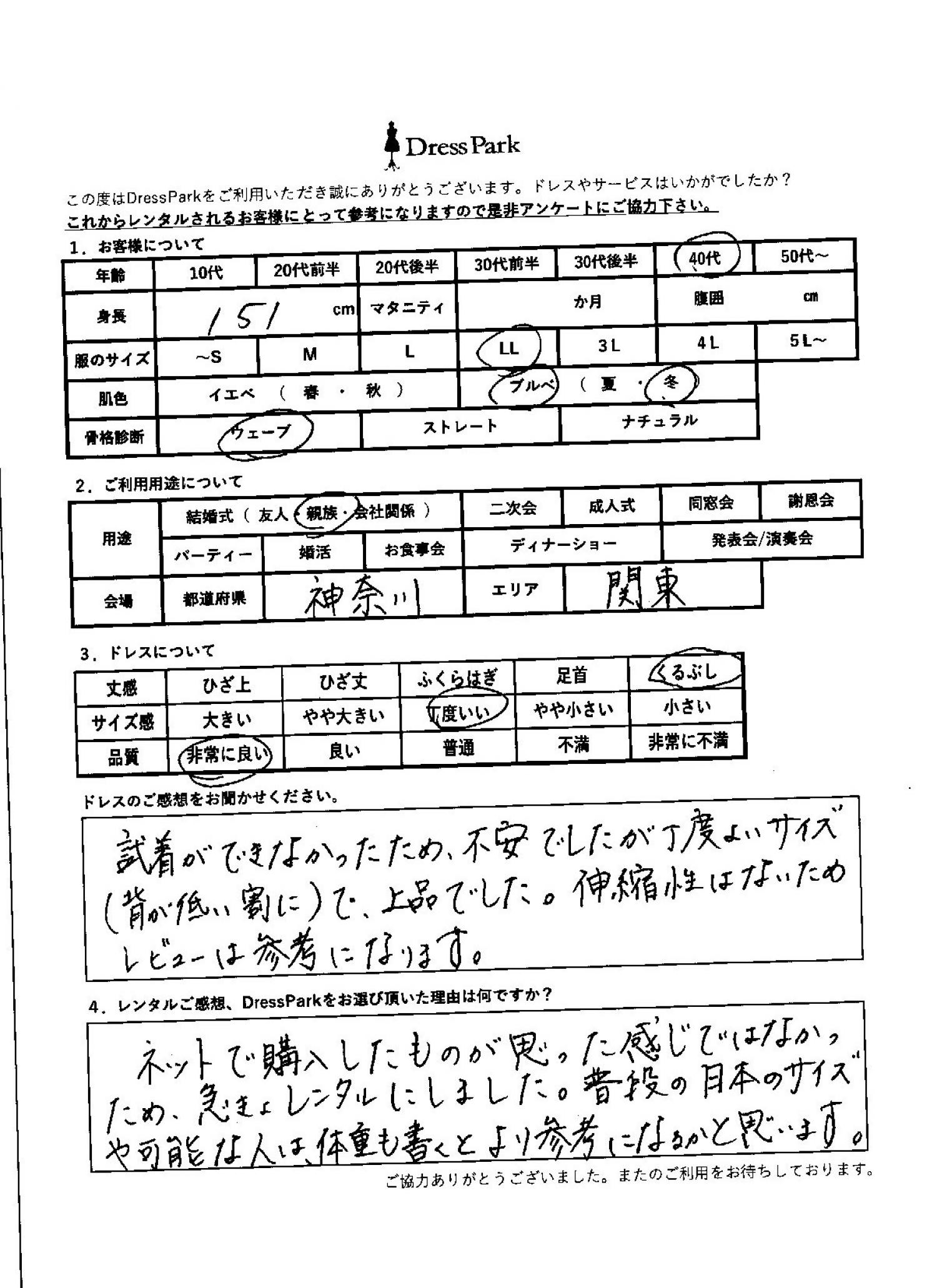 神奈川県 M.Y様151㎝ LLサイズ