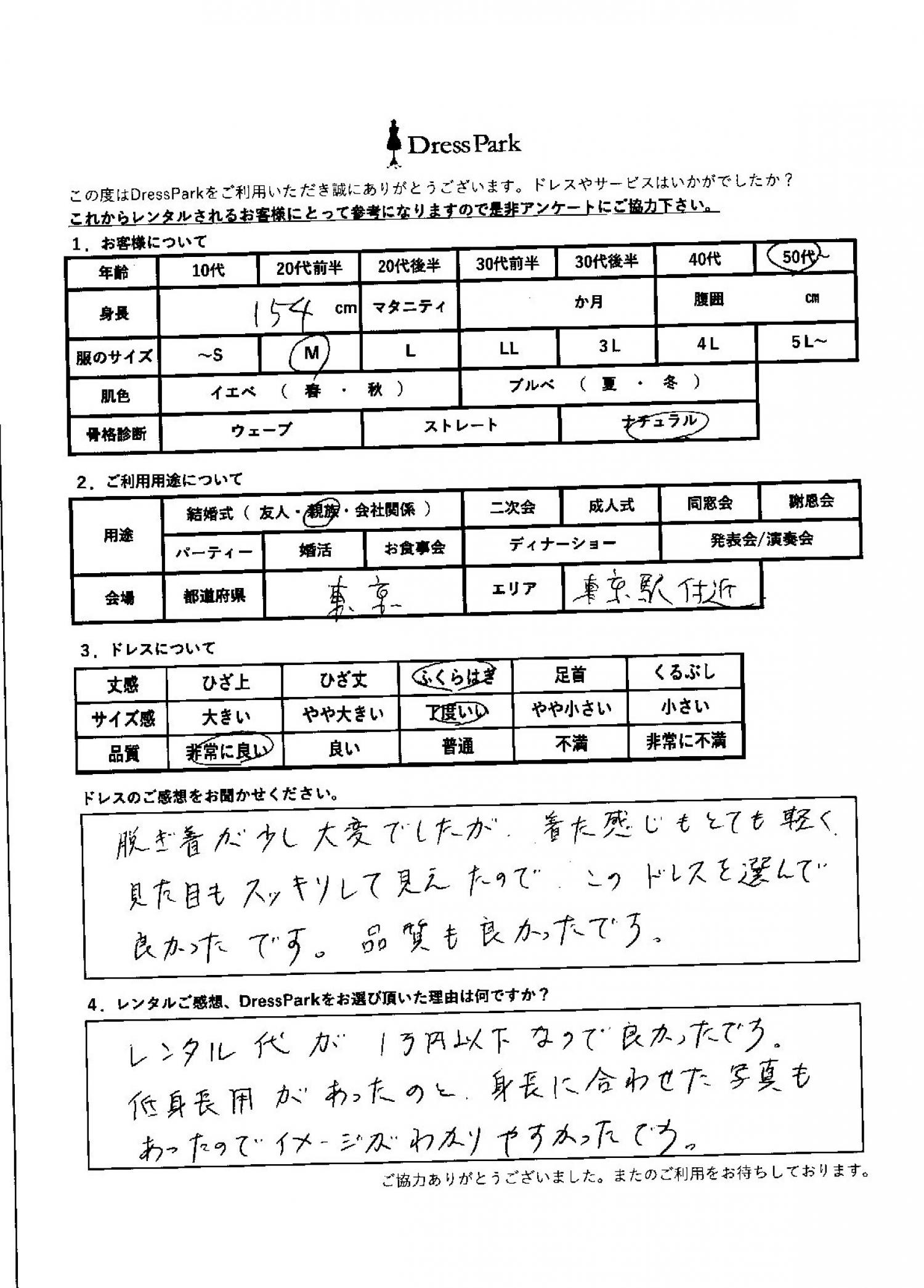東京都 Y.M様154㎝ Mサイズ銀座・丸の内